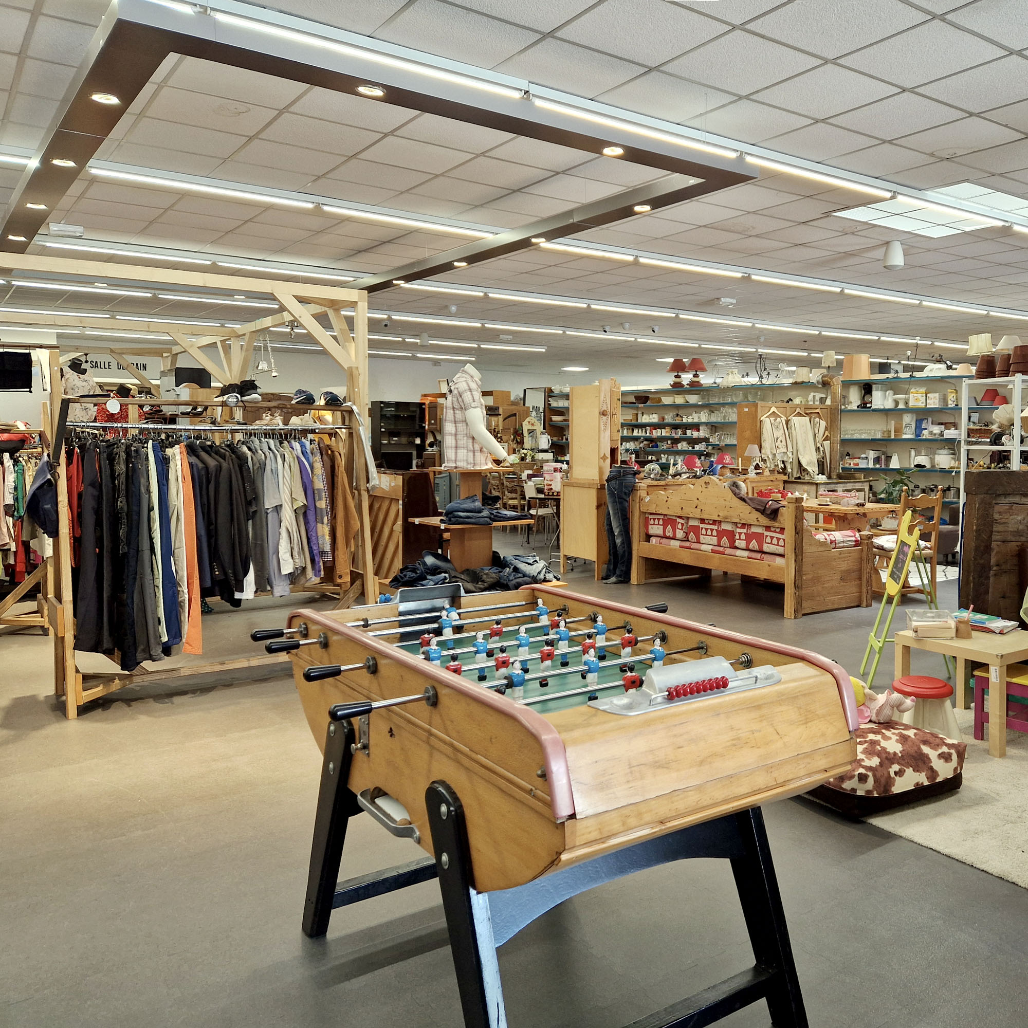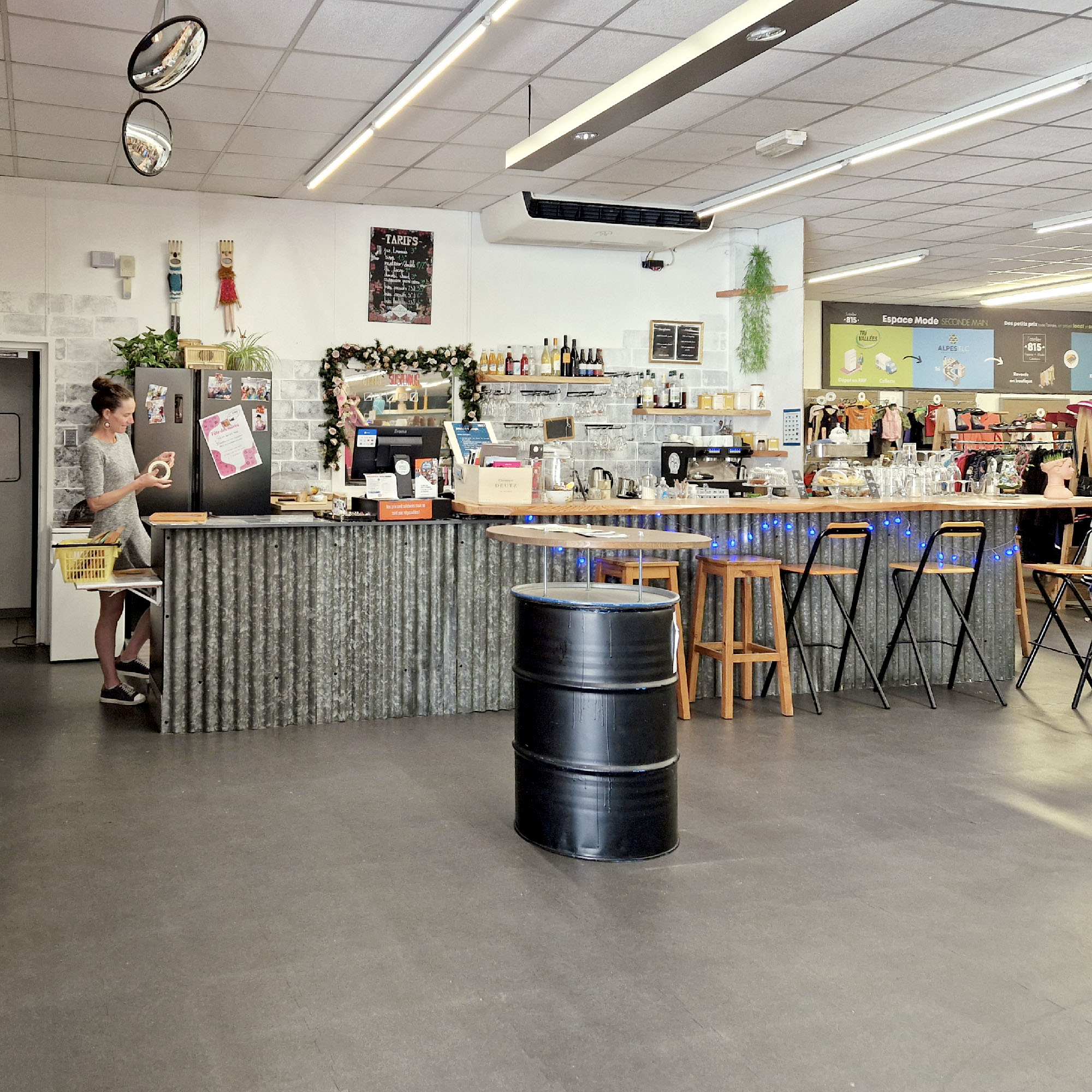 Un troquet où l’on peut écouter de la bonne musique tout en sirotant une limonade en attendant que son/sa cher et tendre fasse ses essayages dans le rayon friperie. Où l’on peut venir boire un café (ou une bonne bière locale !) entre copains pendant que les pioupious se font de nouveaux copains dans l’espace de jeux juste à côté.